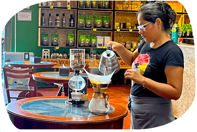 Beneficio: Refuerza la conexión con la cultura local y da un valor agregado a la experiencia cafetera. También puede atraer a un público interesado en la gastronomía y en vivir nuevas experiencias.